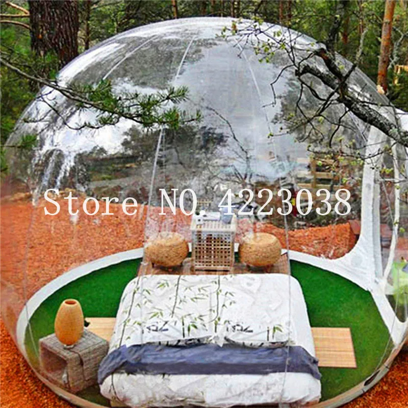 Free Shipping Dia 3.8m+1.5m tunnel Transparent Inflatable Bubble Camping Tent with Free Air Pump