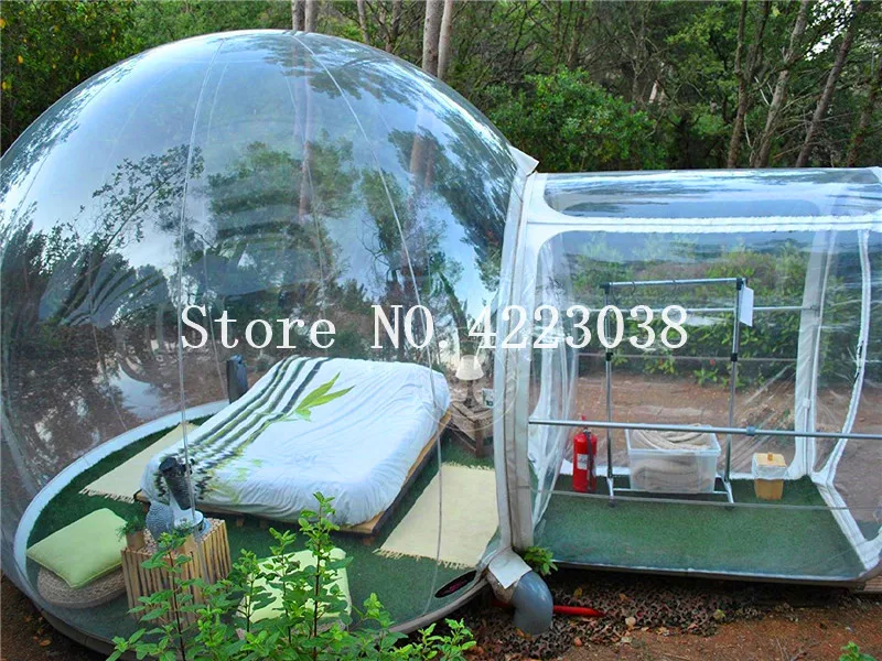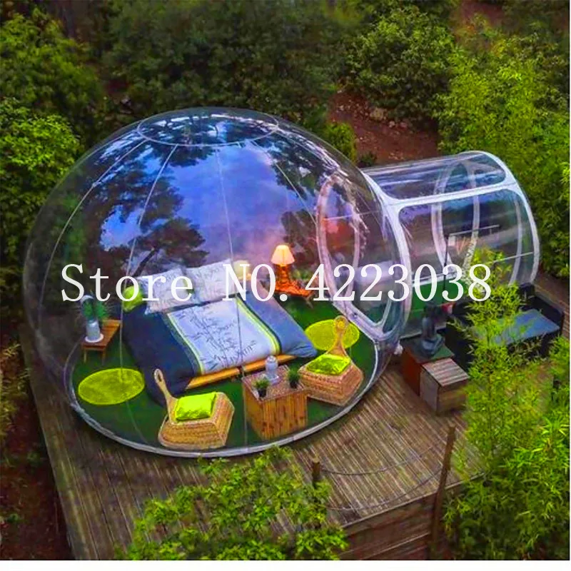Hot Sale Free Shipping Dia 3.8m+1.5m tunnel Transparent Inflatable Bubble Camping Tent with Free Air Pump
