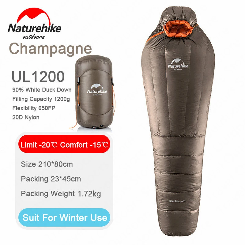 TOP Naturehike Camping Duck Down Sleeping Bag Ultralight Camping Outdoor Equipment Mummy Sleeping Bag W