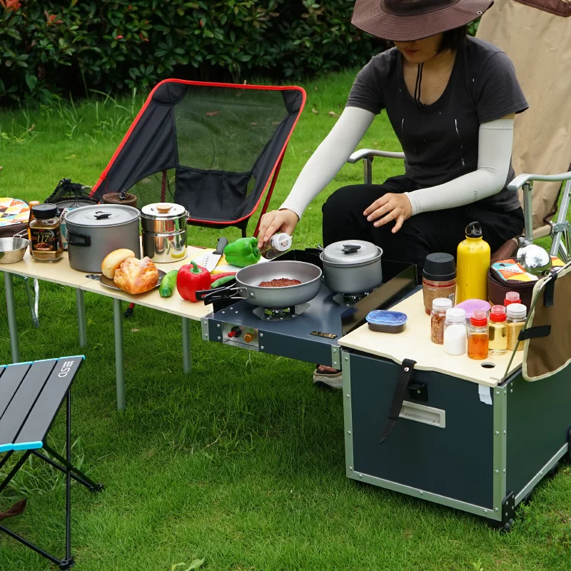 HIGH QUALITY Outdoor BBQ picnic tool mobile kitchen camping folding table stove camping barbecue self-driving ve